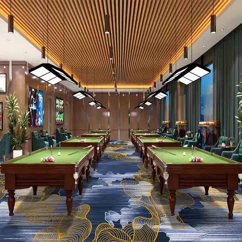 总之,台球室地毯不仅是一件实用的装饰品,而且是提高台球运动品质和舒适度的重要保障。选购和使用时要注意细节,充分发挥其实用性和美观性。
